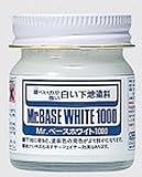 2~4回程度:Mr.サーフェイサー 1000をシンナー(薄め液)で希釈したものをプロスプレーMk-2で吹き、最後にMr.ベースホワイトで仕上げる、という手順でやっていましたが、下から灰色の塗装が出てきちゃうと面倒が多いので、最近はいきなりMr.ベースホワイトで吹いちゃうことが多いです。灰色サフは傷を目立たせるという長所がありますが、無くても何とかなるものです。小傷を目立たせるという用途で使うときはなるべく薄めたグレーを使ったほうがよろしいかと。
